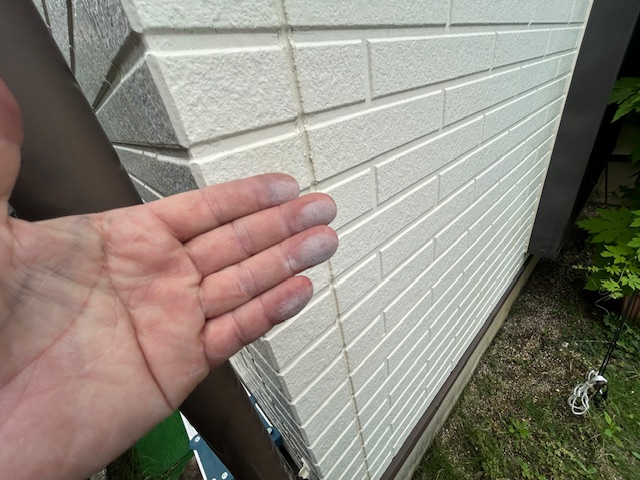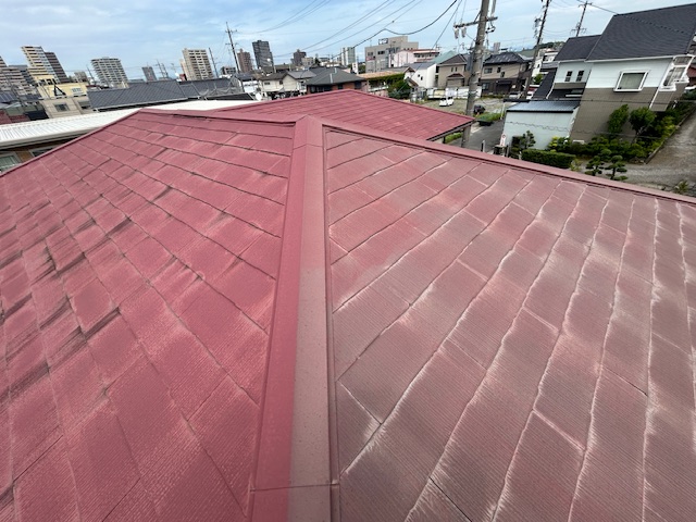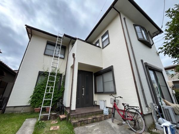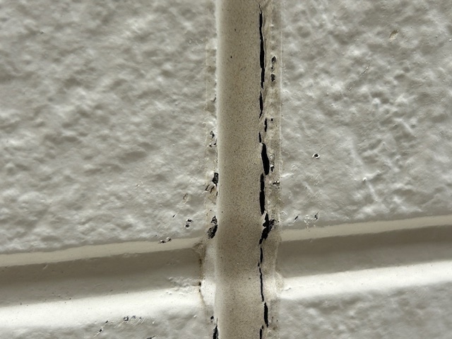 現地調査時は、外壁のコーキングの劣化と屋根のスレートのヒビ割れや色あせが見られました。