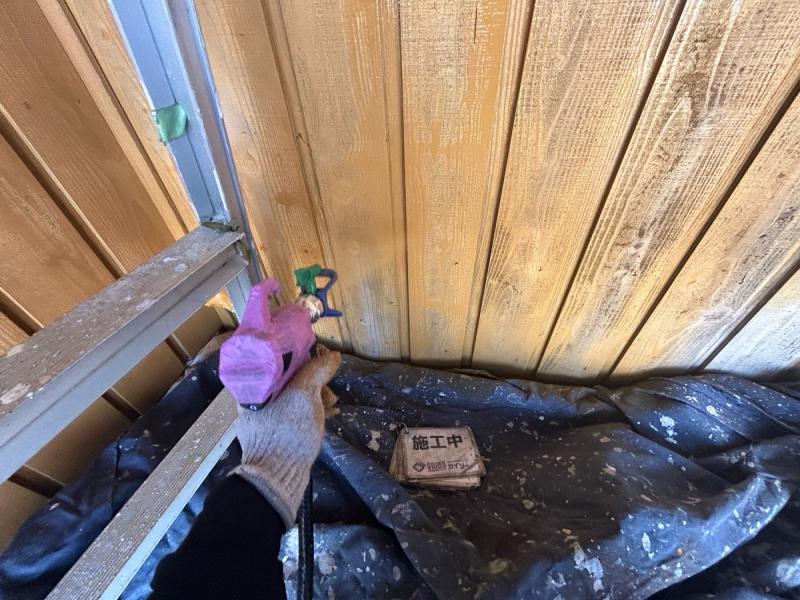 外壁が木材だったため、防蟻性もある木部専用塗料セーフウッドでの塗装をご提案致しました。