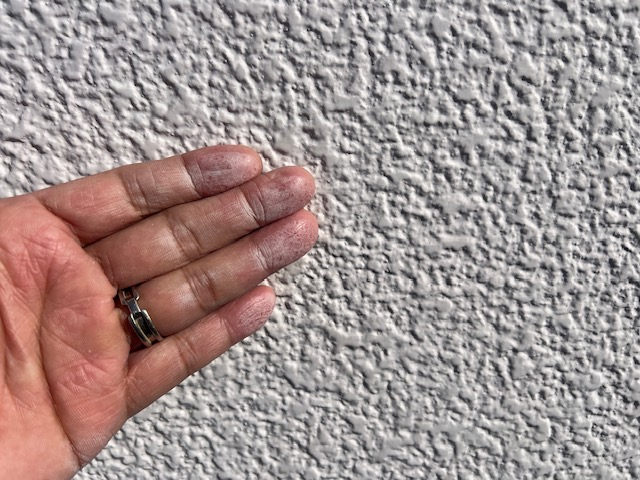 現地調査時は、色あせ、チョーキング、コケの発生、塗膜の剥がれ、クラック、コーキングの劣化が見られました。