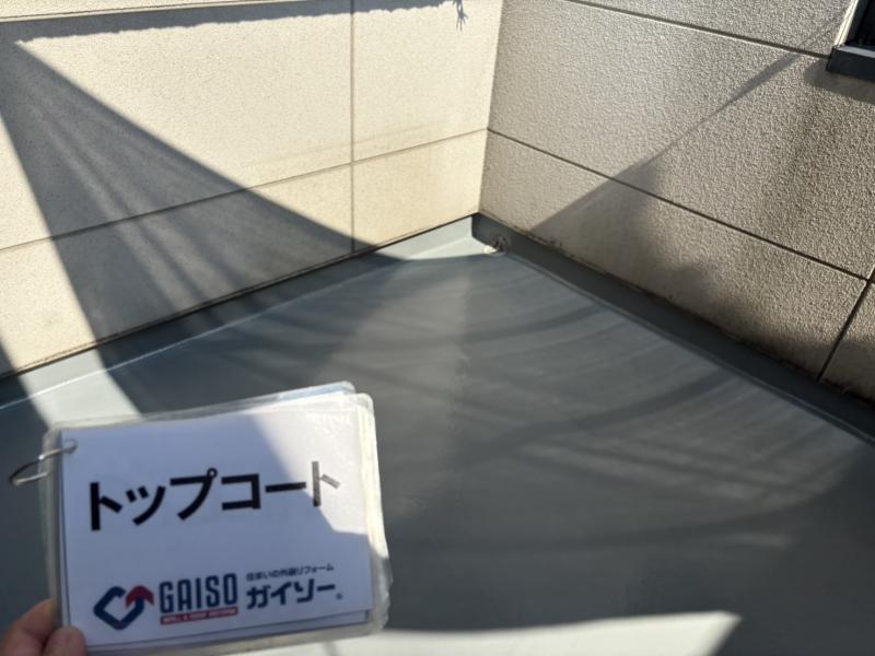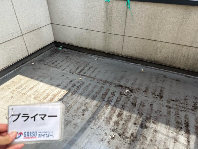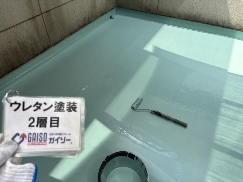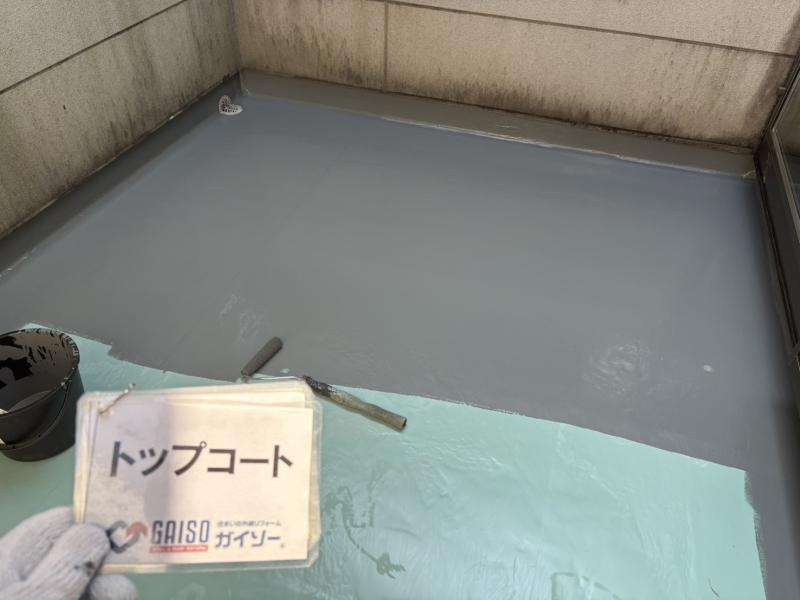 雨漏りの原因の1つとして、ベランダのウレタン塗膜密着工法での改修工事をご提案させていただきました。