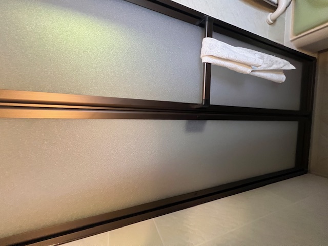 現地調査時は、浴室折れ戸の経年劣化による破損が見られました。