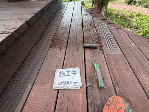 ウッドデッキの色あせが見られました。