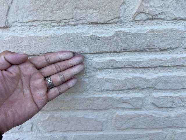現地調査時は、外壁の色あせ、コーキングの劣化、チョーキングが見られました。