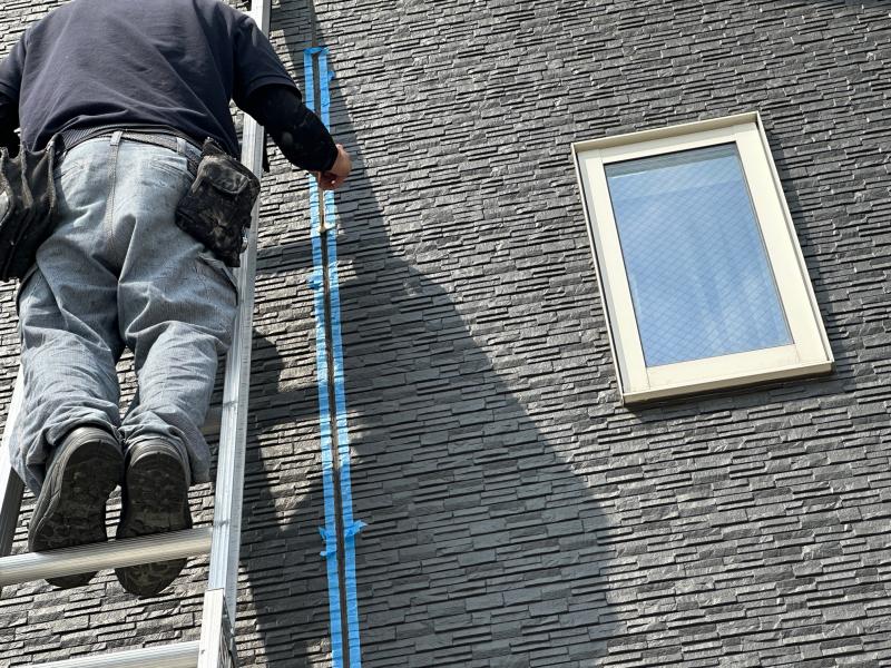 新しくコーキングを打つ部分の劣化したコーキング材を撤去し、養生をします。