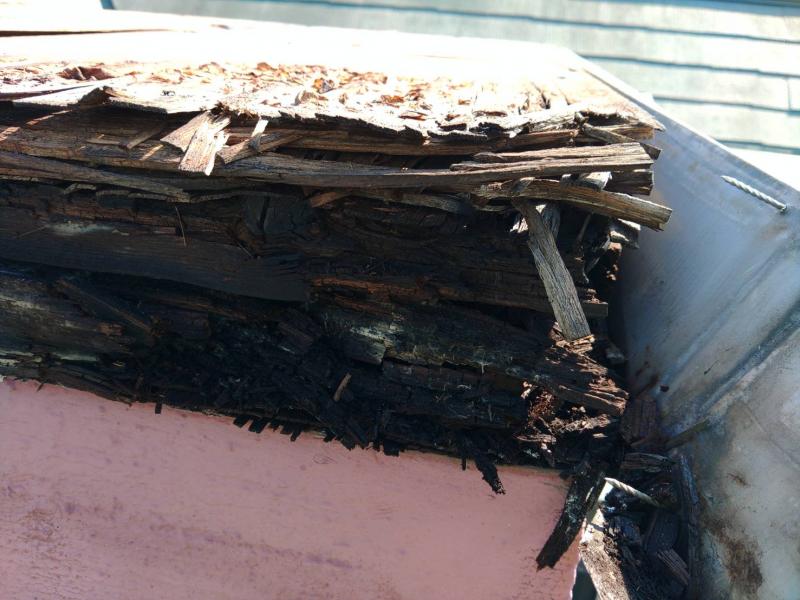 煙突の中の木材が腐っていました。