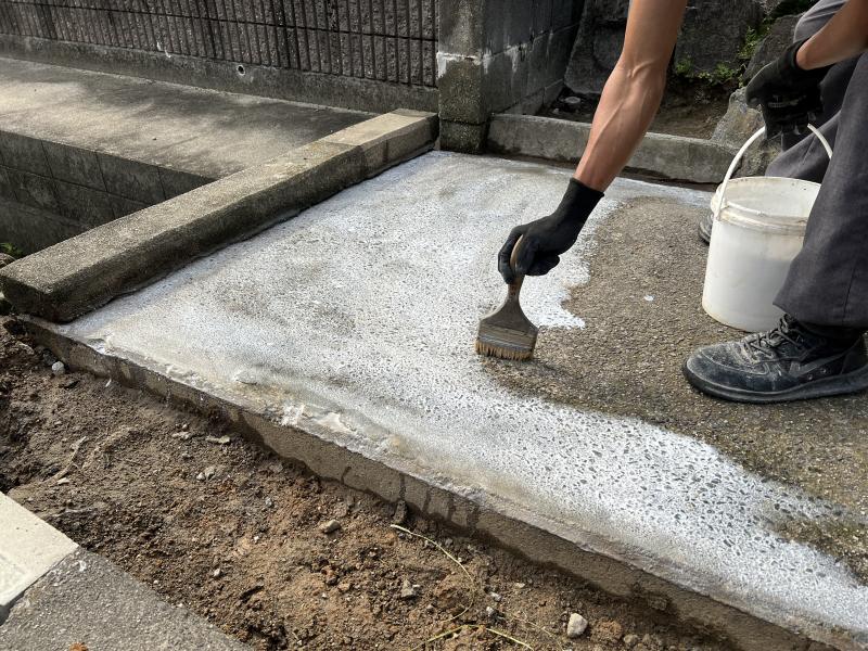 既存の土間の部分に下塗りを塗布します。