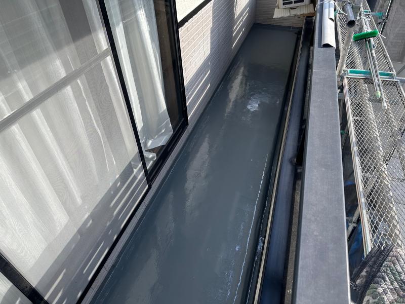 その後、ベランダ下の軒天も合わせて、綺麗に塗装をします。