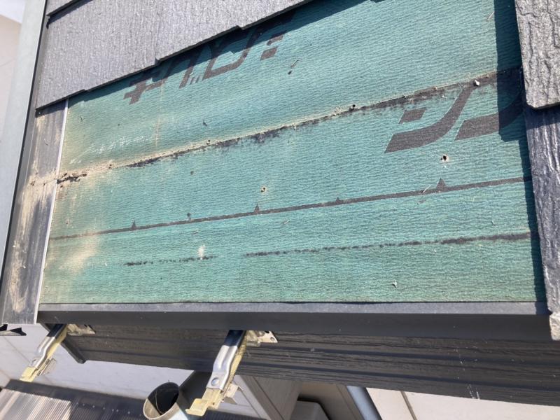 ルーフィングの釘穴に止水処理をし、新しいカラーベストを復旧します。