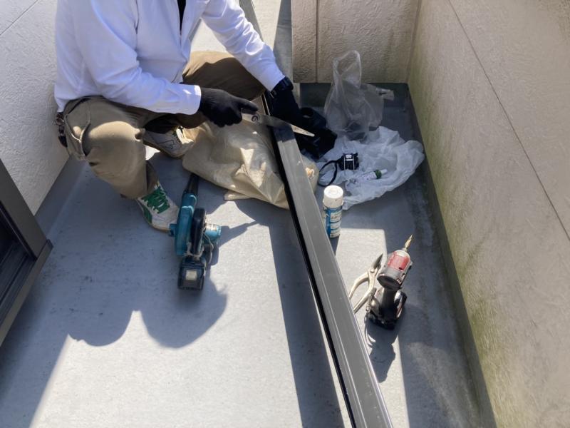 最後に貼るカラーベストには釘を打てない為、専用のコーキングで接着して完了です。